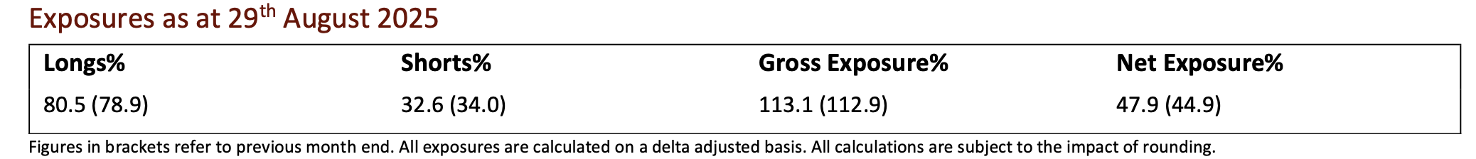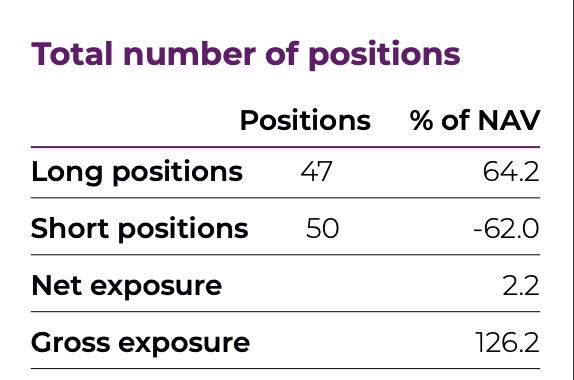 When reporting on allocation, long/short funds make the distinction between long and short exposure, gross exposure and net exposure. It’s fairly common to have exposures higher than 100% on one of these metrics, so I wouldn’t be shocked by a 105% metric personally (see two screenshots from fund factsheets below.). It would always be offset with negative cash or negative stock elsewhere to make it 100% again as you cannot allocate more than 100% of the net portfolio value without borrowing money / selling short.